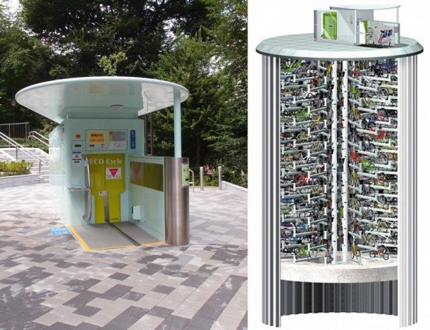 4. Велопарковка-робот у Японії. Японці, навчені використовувати простір на 200%, застосовують це правило до всього, в тому числі і до велосипедів. Так виглядає підземна велопарковка, зроблена компанією Giken Ltd. Велосипед не потрібно ні до чого пристібати: вся взаємодія з паркінгом зводиться до двох дій – завантажити і розвантажити. Безпека, як можна здогадатися, підвищується в десятки разів.