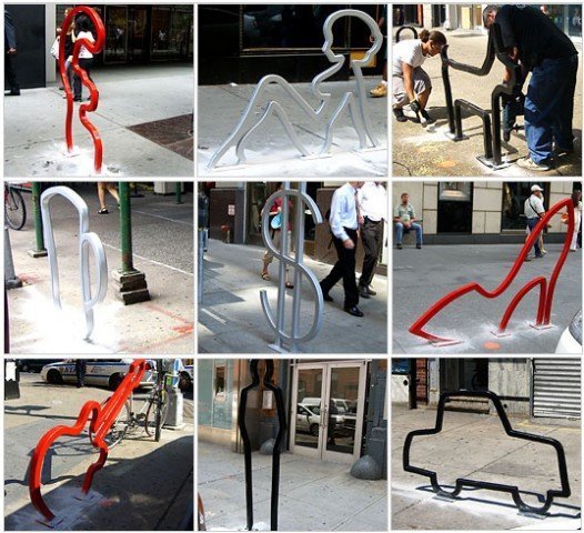 5. Скульптурні велопарковки.У нью-йоркських парковках, спроектованих Девідом Бірном, немає складних наворотів, вони зовсім не відрізняються ергономічністю і, якщо вже зовсім чесно, не особливо ефективні – до однієї такої парковці зможуть причалити навряд чи більше трьох-чотирьох велосипедів. Зате вони фотогенічні і прекрасно справляються з роллю орієнтирів.