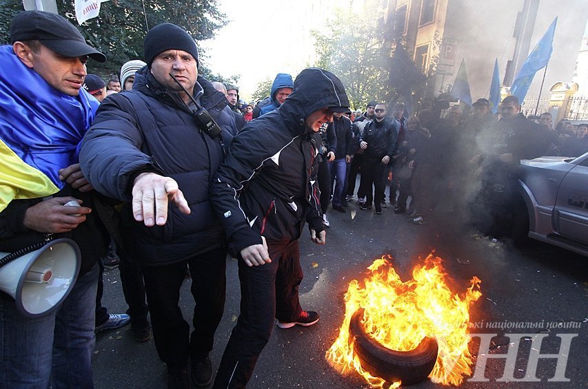 У Києві під Адміністрацією Президента України 10 жовтня активісти підпалили автомобільні покришки.