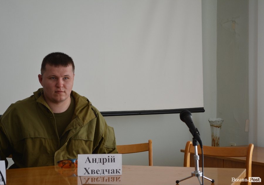 Також на зустрічі були присутні командир 2-ої роти «Захід» батальйону «Айдар», кандидат у народні депутати України Ігор Лапін, координатор Самооборони Майдану Волині Андрій Хведчак, бійці батальйону «Айдар» та «самообороівці».