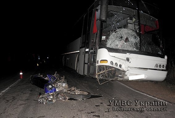 Під час перевірки встановили, що 52-річний водій, житель селища Любешів, керуючи автобусом «Неоплан», при зустрічному роз’їзді зіткнувся з мотоциклом «Вайпер».