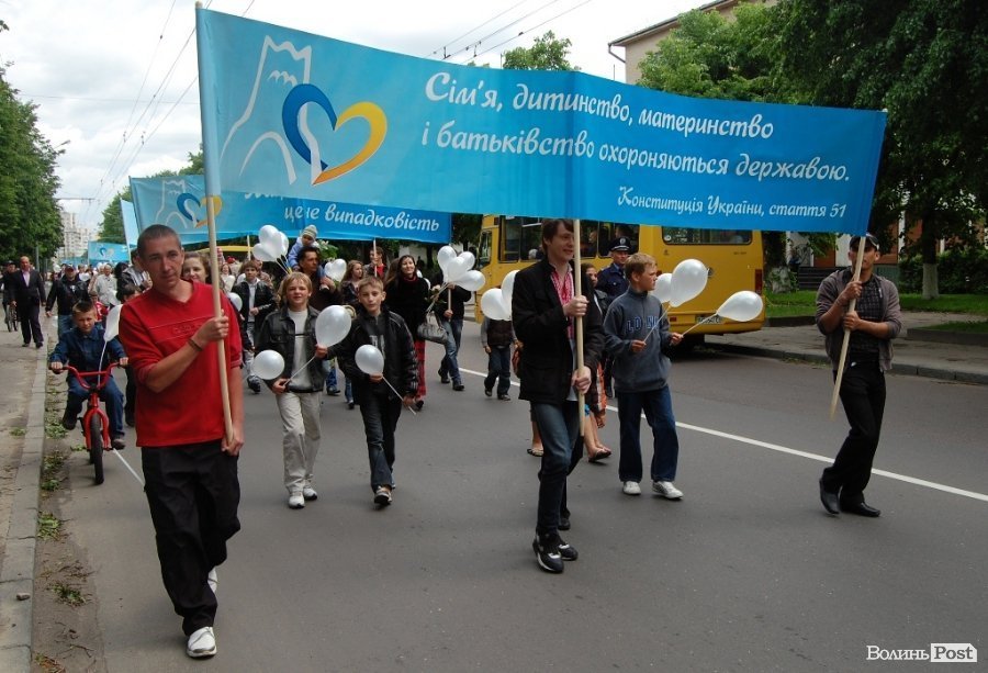 Розпочали дійство із багатолюдного параду головним проспектом міста: кілька сотень учасників з транспарантами урочисто пройшли від Київського майдану проспектом Волі до головного корпусу ВНУ, де звернули у центральний парк. Процесію супроводжував духовий оркестр. Самі учасники вигукували гасла: «Щаслива родина – міцна країна», «Тато, мама, я – щаслива вся сім’я».