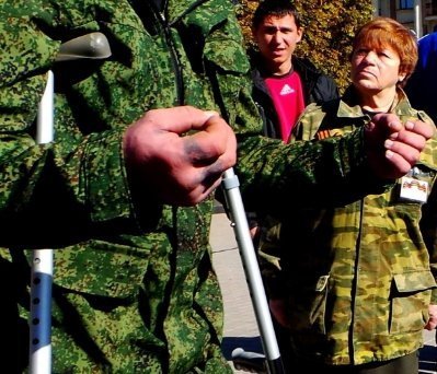 Про це повідомляє "ТСН" з посиланням на "Новини Донбасу". За інформацією на мітингу були присутні люди зі свастикою. Так, судячи з фото, в одного з організаторів мітингу на пальцях було помічено татуювання зі свастикою.