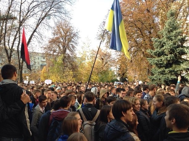 Мітингувальники наголошують, що зібралися на мирний протест і не хочуть допустити ніяких провокацій. При цьому студентів стає все більше.