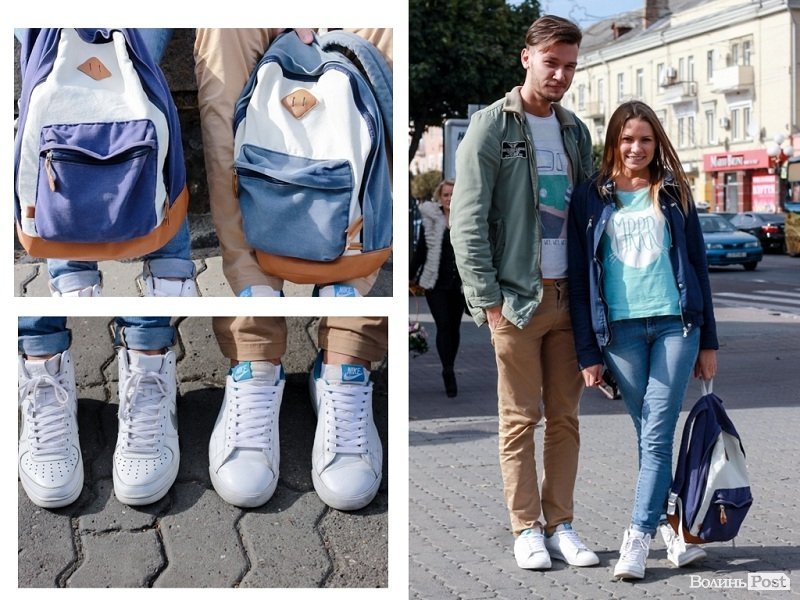 На фото Рома та Іра одягнені у куртки Pull&Bear, кросівки NIKE, футболки BERSHKA, штани TERRANOVA, джинси COLIN’S. Образ доповнюють рюкзаки ASOS та окуляри.