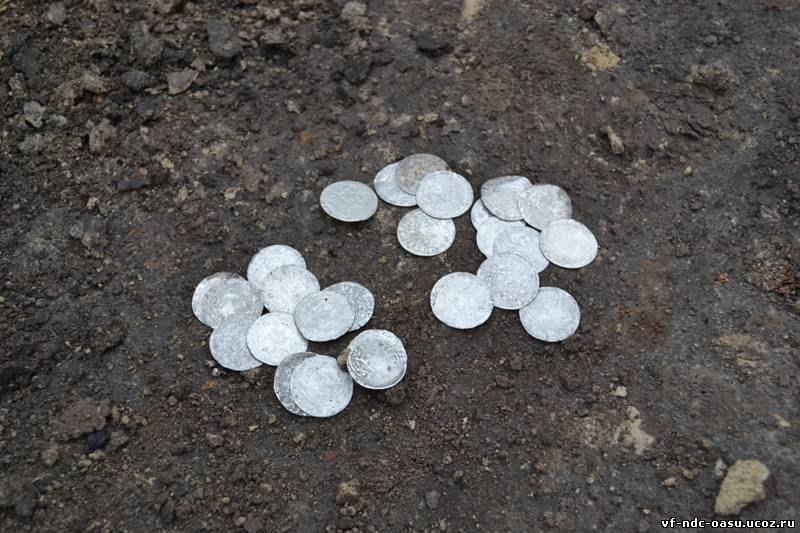 Археологи взялися пересіювати ґрунт. У результаті знайшли 29 срібних кружалець. Науковці ідентифікували знахідку — це так звані празькі гроші, відчеканені в кінці XIV — на початку XV століття чеськими королями Вацлавом ІV та Карлом І. Три монети поки що остаточно не ідентифіковані.