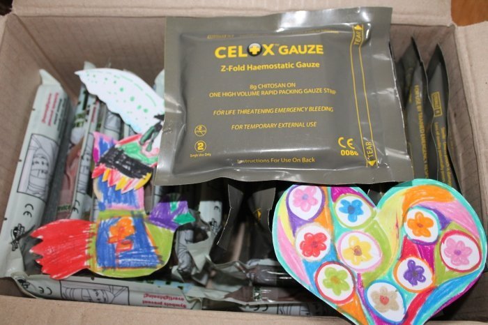 Таким чином небайдужі громадяни передали українським солдатам: 10 Celox X GAUZE; Control Wrap 4 еластичні бандажі – 10 штук; Control Wrap 6 еластичні бандажі – 20 штук; 10 SWAT Джгутів; 5 дощовики; термобілизну, нижню білизну, шкарпетки, шапки.