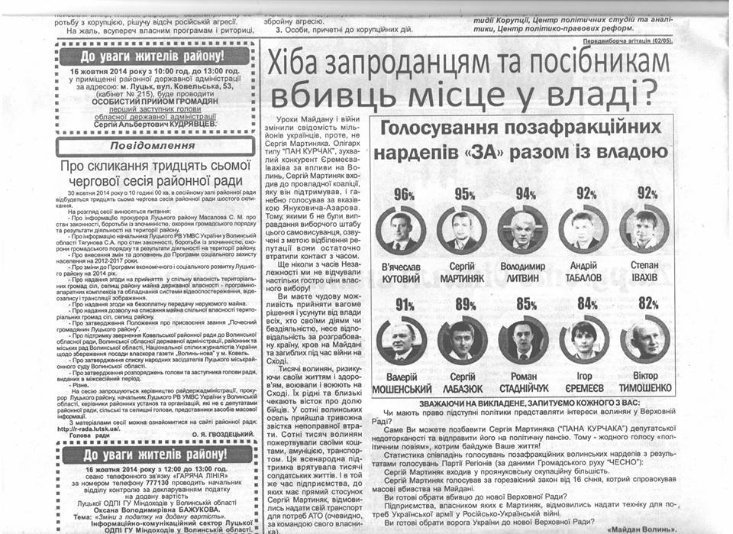 В цих листівках писали про те, що народний депутат Сергій Мартиняк нібито входив до провладної коаліції та голосував за вказівкою Януковича-Азарова. На підтвердження цього в листівці є посилання на інфографіку руху ЧЕСНО.