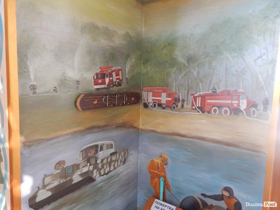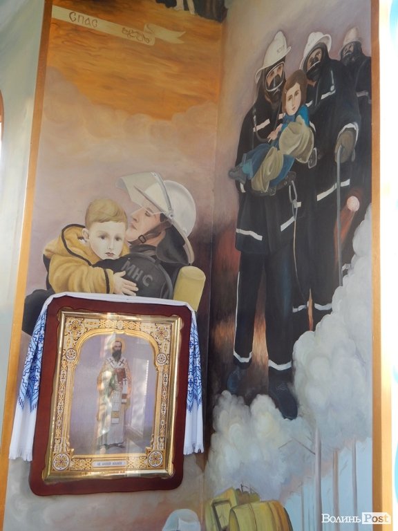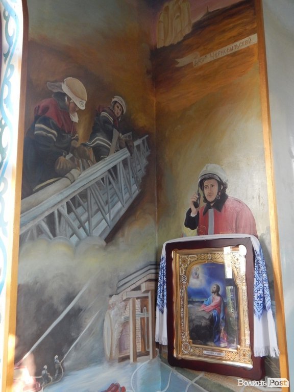 Не так давно біля частини побудували капличку з незвичним для церков розписом на стінах. Він унікальний у своєму роді і є тематичним для сфери діяльності рятувальників. Розпис виконував майстер із Ковеля.