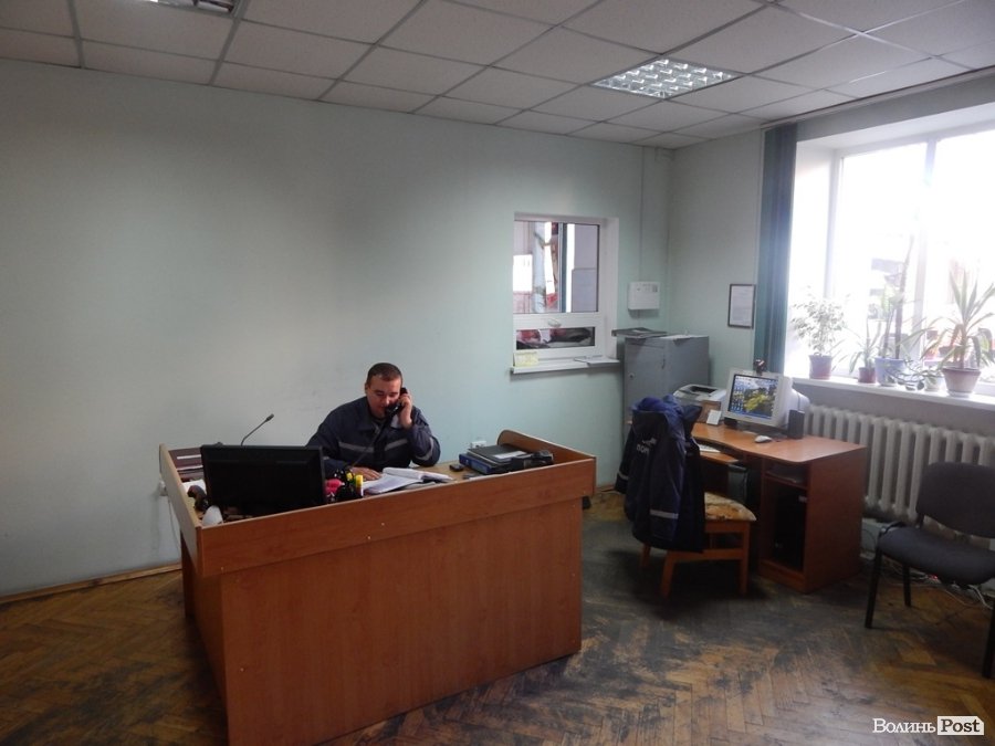 Коли зайти у будівлю частини, одразу можна потрапити у кабінет диспетчера. Його функція у роботі рятувальників є ключовою. Адже він першим отримує повідомлення про пожежу і вмикає тривогу.