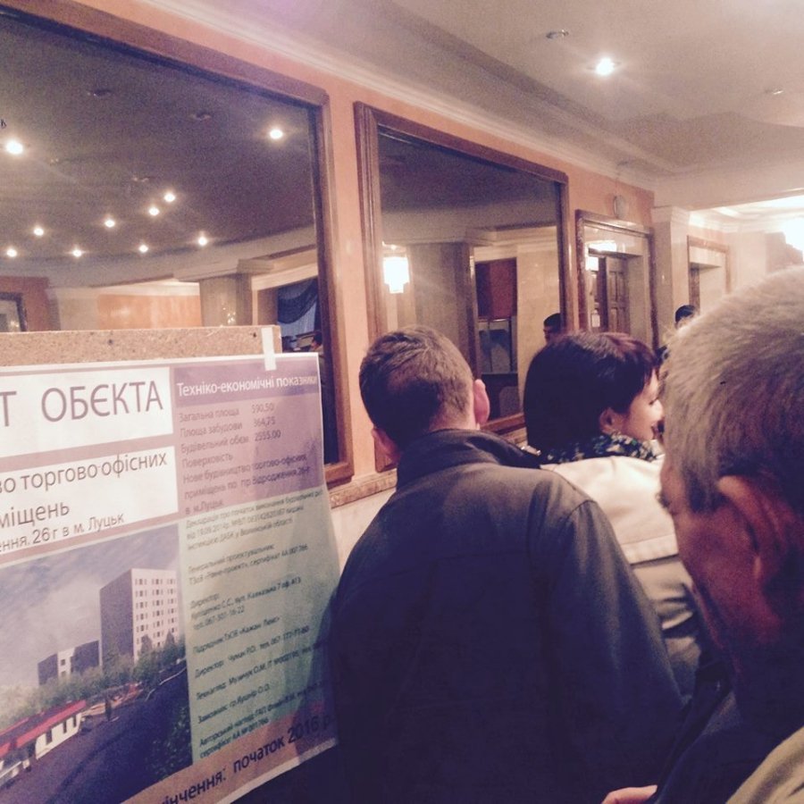 Мешканців житлової території, у якій планують будівництво торгово-офісного центру збентежило те, що на громадських слуханнях були сторонні особи. На задніх рядах актового залу сиділи студенти, які зізнались, що не мешкають по вулиці Відродження і переконували, що прийшли на збори задля цікавості.