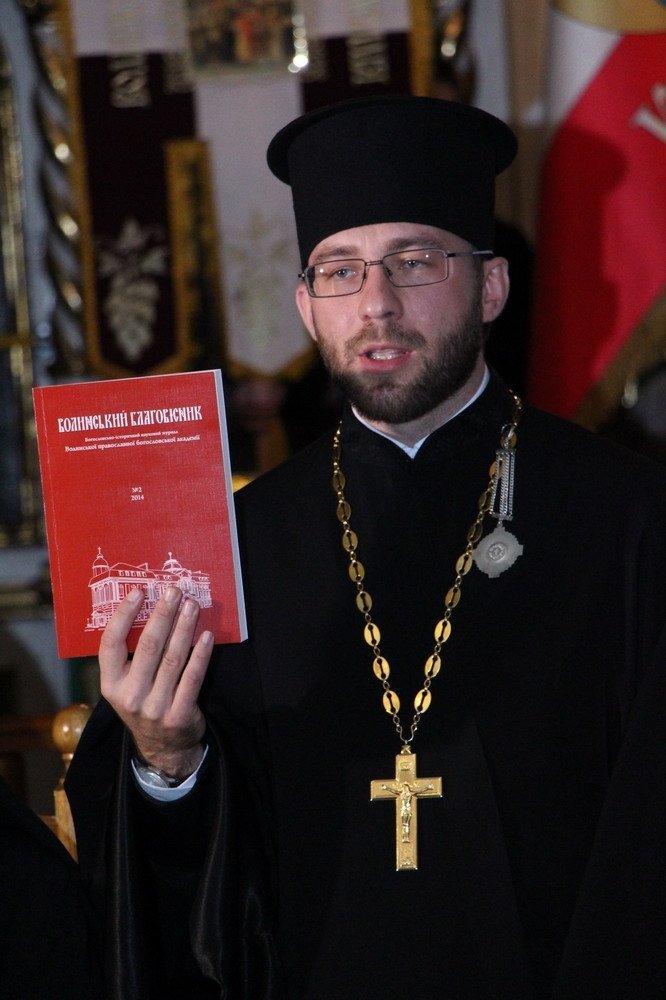 Ректор Ужгородської академії архімандрит Віктор (Бедь) вручив владиці знак та відповідні документи 23 жовтня під час урочистої частини актового дня Волинської православної богословської академії (ВПБА), яка проходила в нижньому Преображенському храмі кафедрального собору Святої Трійці, що в Луцьку.