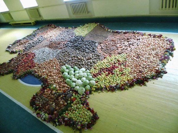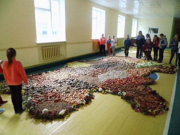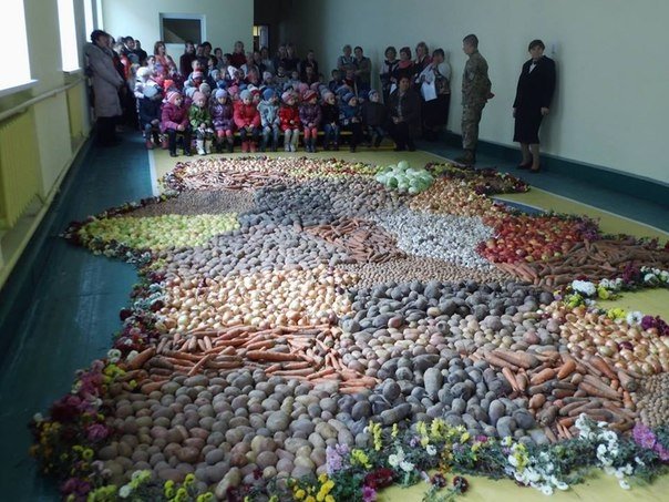 У загальноосвітній школі № 4 міста Ківерці виклали карту України овочами і фруктами, які зібрали учні.