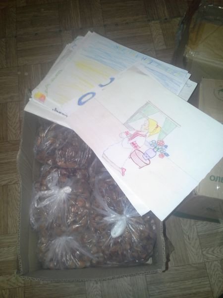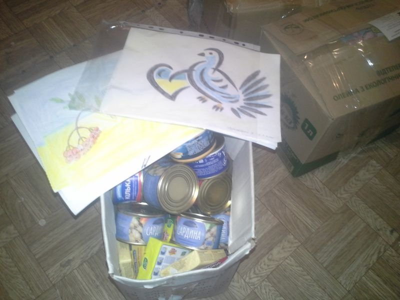 "Передали продукти на Маріуполь на блокпости, не багато, що встигли назбирати за вихідні, те й відправили. Ще Рязанов Андрій добавив добра для них. Дякуємо нашим школярам, які принесли харчі, листи і гарні мотанки. Вони вже в дорозі до наших військових", - зазначають активісти.