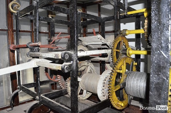 Гвинтові сходи, різні потаємні і не дуже двері, химерна конструкція інтер’єру – це, звісно, цікаво. Та справжньою родзинкою чотирикутної вежі кафедрального собору Петра і Павла є старий механізм годинника.
