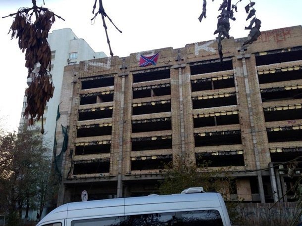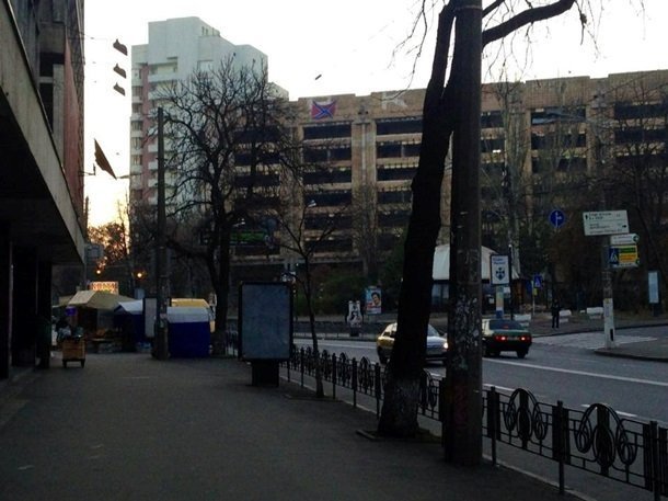 Прапор сепаратистської "Новоросії" з'явився на будівлі недобудованого корпусу Київського Національного університету театру, кіно і телебачення ім. Карпенка-Карого на Львівській площі, - пише КорреспонденТ.net.