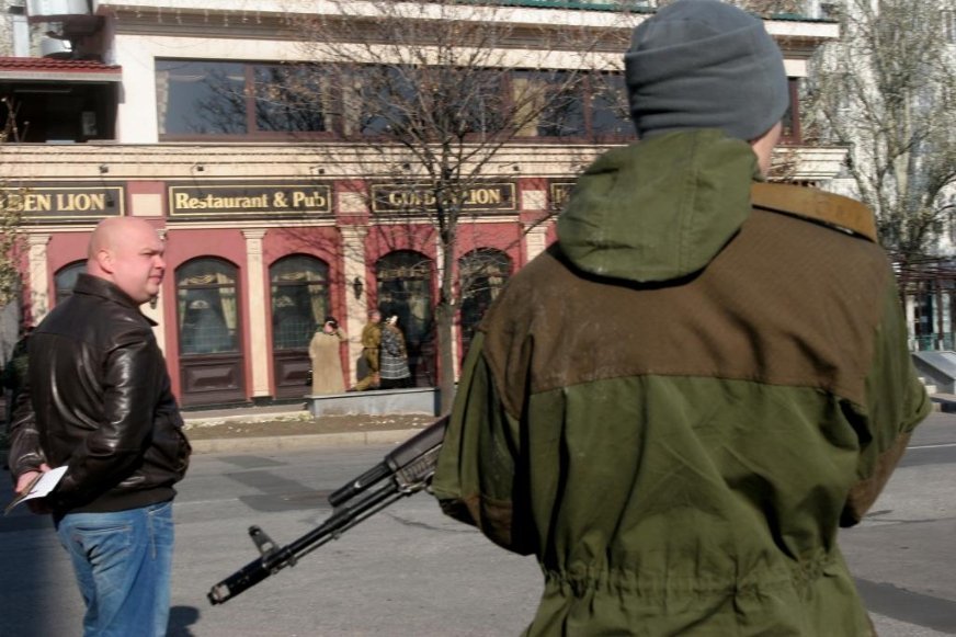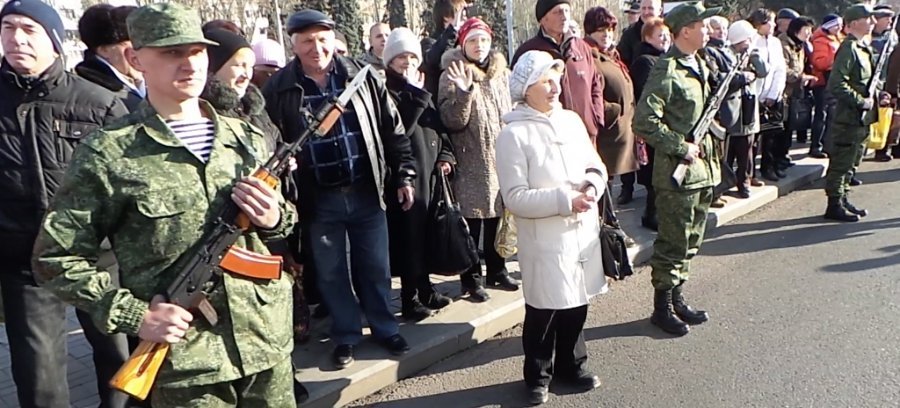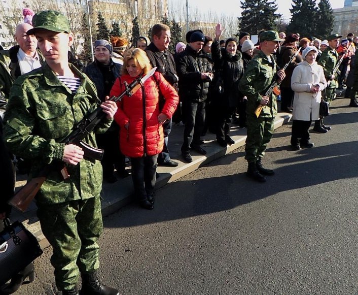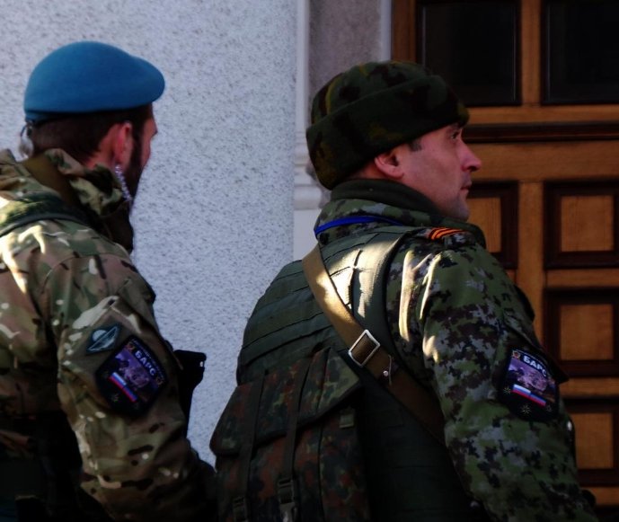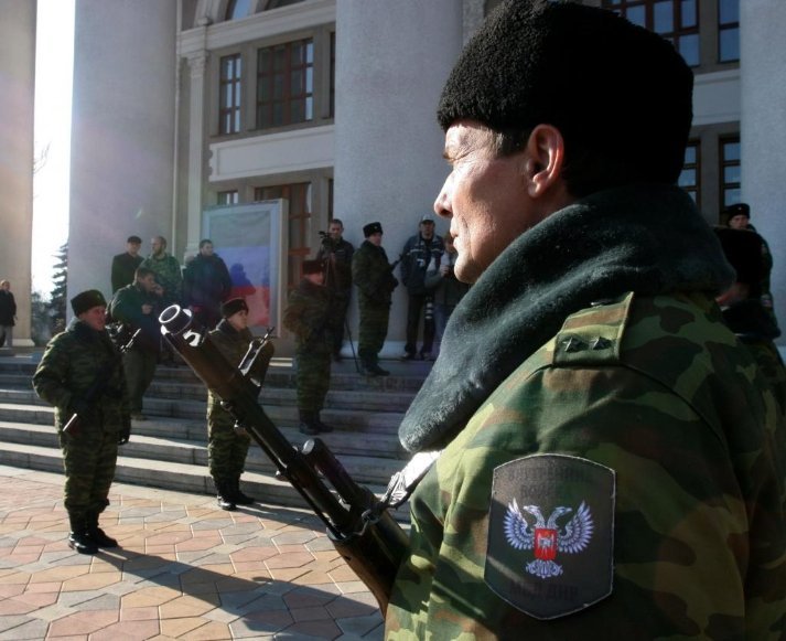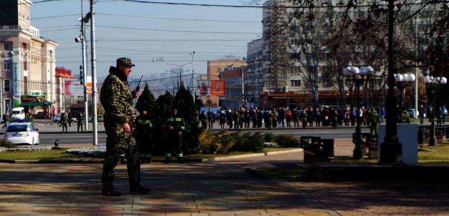 Бойовики посилили заходи безпеки: периметр будівлі оточено великою кількістю озброєних людей і кінної поліцією.