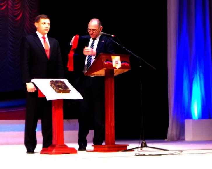 Захарченку вручили посвідчення глави ДНР, після чого він поклявся на Біблії «дотримуватися законів ДНР, поважати і захищати права і свободи громадян, чесно і сумлінно виконувати свої обов'язки».