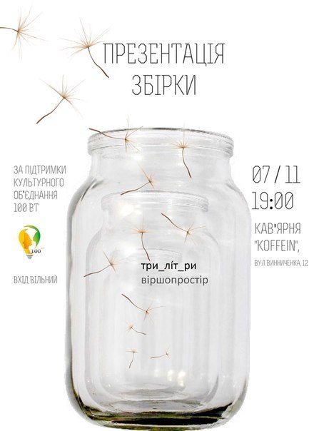 Презентація збірки відбудеться 7 листопада о 19 годині у кав’ярні «KOFFEIN» (місто Луцьк, вулиця Винниченка, 12).