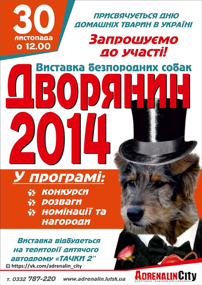 Виставку «Дворянин-2014» проводитимуть 30 листопада на території дитячого автодрому «ТАЧКИ 2» у СРК «Адреналін» (вулиця Карбишева, 1).