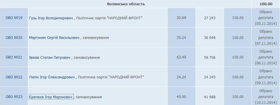 10 листопада стало відомо про остаточні результати виборів по п’яти мажоритарним округам Волинської області.