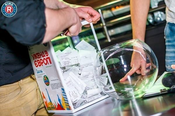 Отримати можливість побувати у Європі міг кожен відвідувач RING DJ CAFÉ. Для участі у розіграші приймали чеки на суму понад 200 гривень. Варто було лише вказати на ньому дані (прізвище, ім'я, по батькові, телефон) та передати його офіціанту.