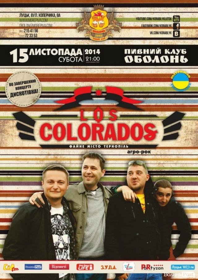 15 листопада «Los Colorados», який виконує агро-рок, виступить у пивному клубі «Оболонь», - повідомляють у групі шанувальників гурту в соцмережі Вконтакті.