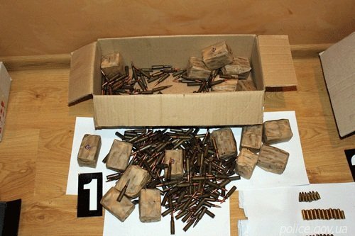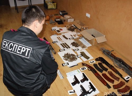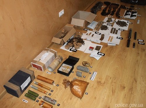 Серед знайденого – 5 пістолетів, автомат «Калашникова», 7 магазинів до пістолетів, 9 магазинів до автомату «Калашникова» (калібру 5.45мм та 7.62 мм), магазин до кулемета РПК, 4 пристрої безшумної стрільби, обріз мисливської рушниці, частину мисливської рушниці (без ствола), патрони різного калібру до різних типів зброї (усього – 1491 шт.), димову гранату, два сигнальні освітлювальні патрони, димову гранату УЧЯДГ, два наземних сигнальних патрони, імітаційний патрон ІМ-100, електродетонатор, вибухова речовина типу «Пластид» вагою 700 грамів, вибухова речовина (ймовірно, «Амоніт») вагою більше 2 кілограмів.