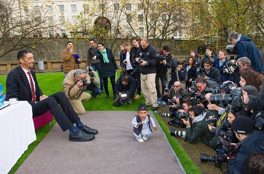 В Лондоні на честь Всесвітнього дня рекордів Гіннесса зустрілися «рекордсмени зростання» - найвища і найнижча людина в світі.