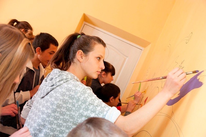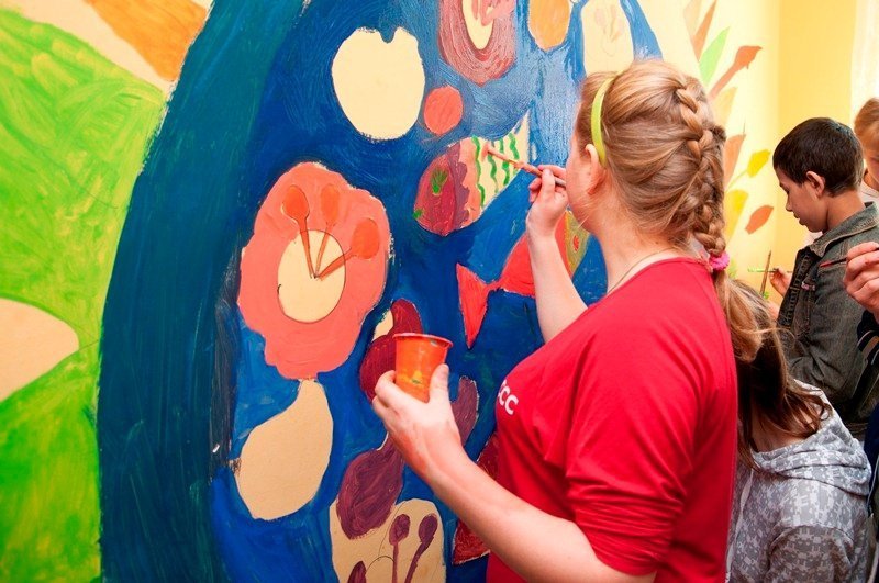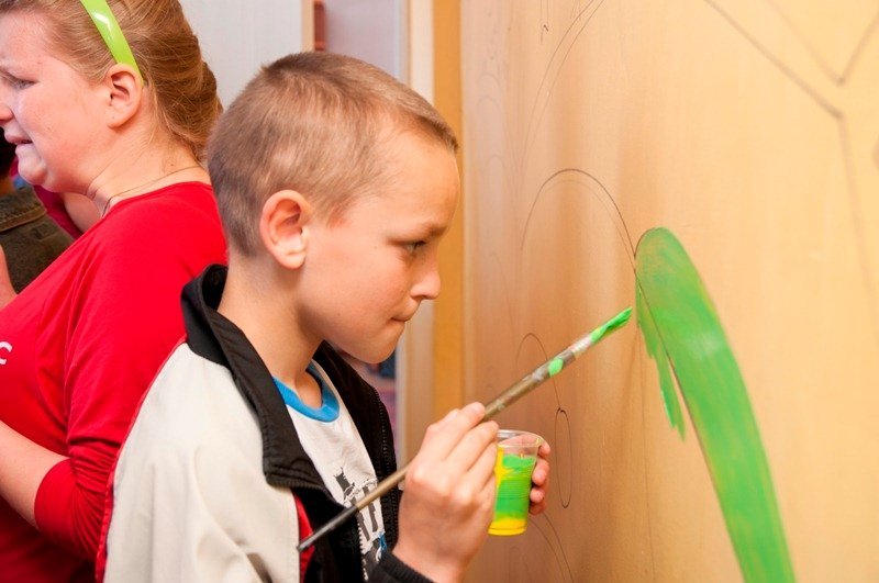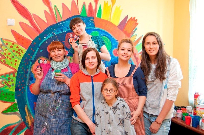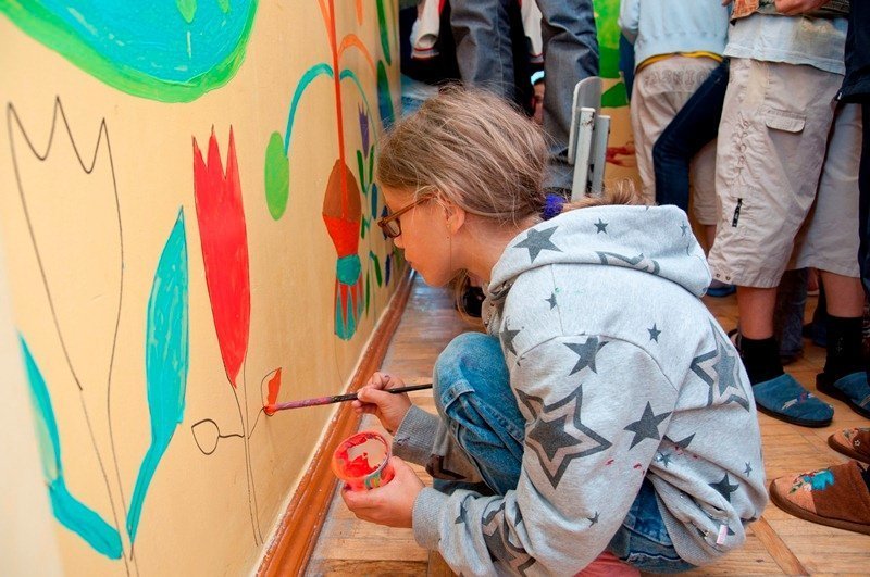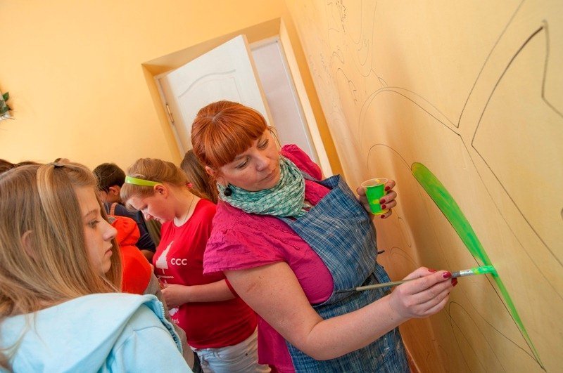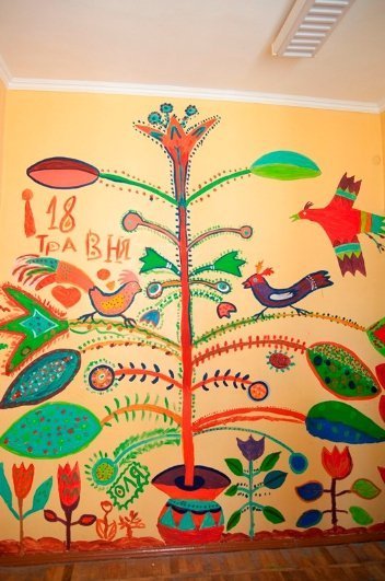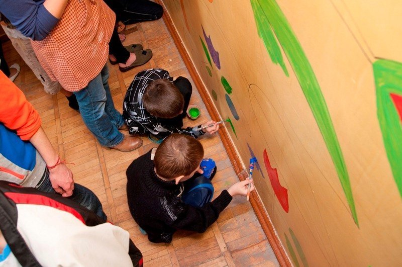 Художниця Тетяна Мялковська разом з арт-студією «Пятерня» малювали разом з дітьми на стіні. Діти назвали свої шедеври «Озеро Світязь», «Дерево бажань», «Ю+В» тощо.