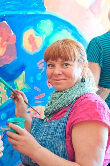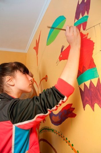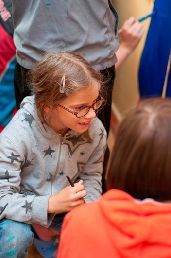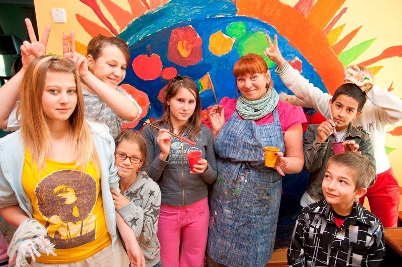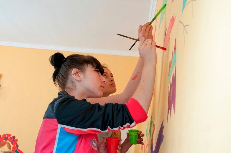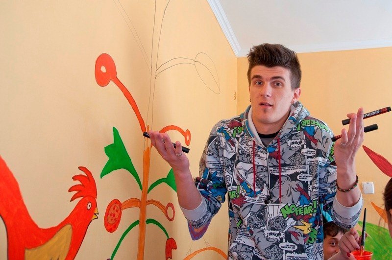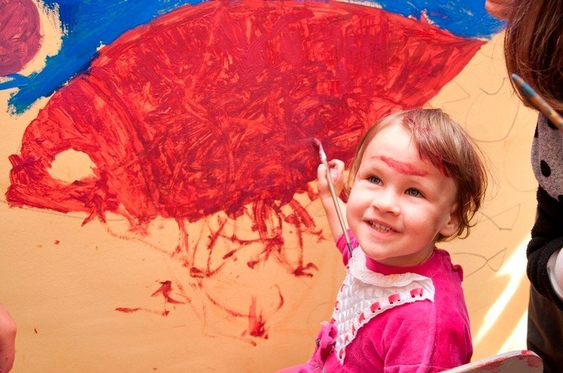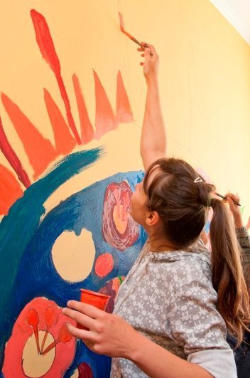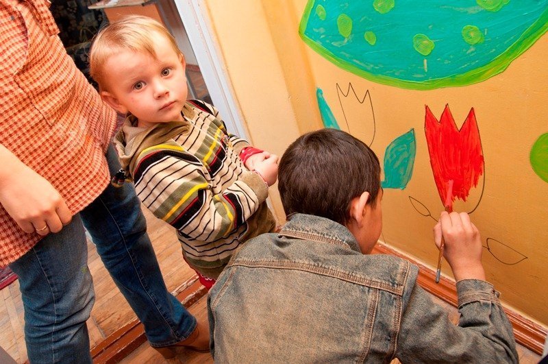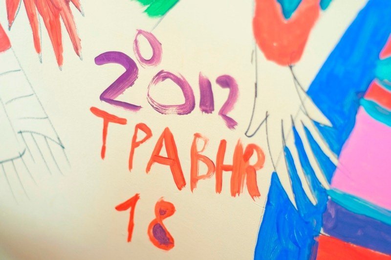 Художниця Тетяна Мялковська разом з арт-студією «Пятерня» малювали разом з дітьми на стіні. Діти назвали свої шедеври «Озеро Світязь», «Дерево бажань», «Ю+В» тощо.