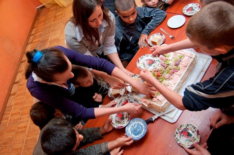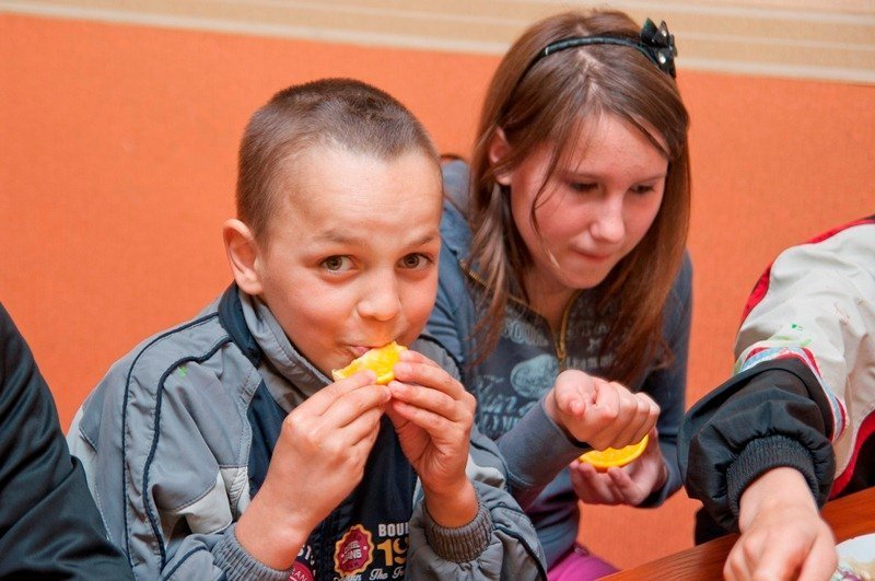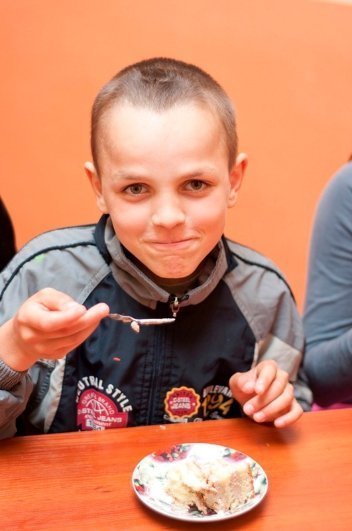 На благодійному обіді діти смакували пельмені від ПП Калинюка, величезний п’ятикілограмовий торт спечений в ТД Луцьккондитер, фрукти та шоколадні сувеніри виготовлені в майстерні шоколаду Шоконель.