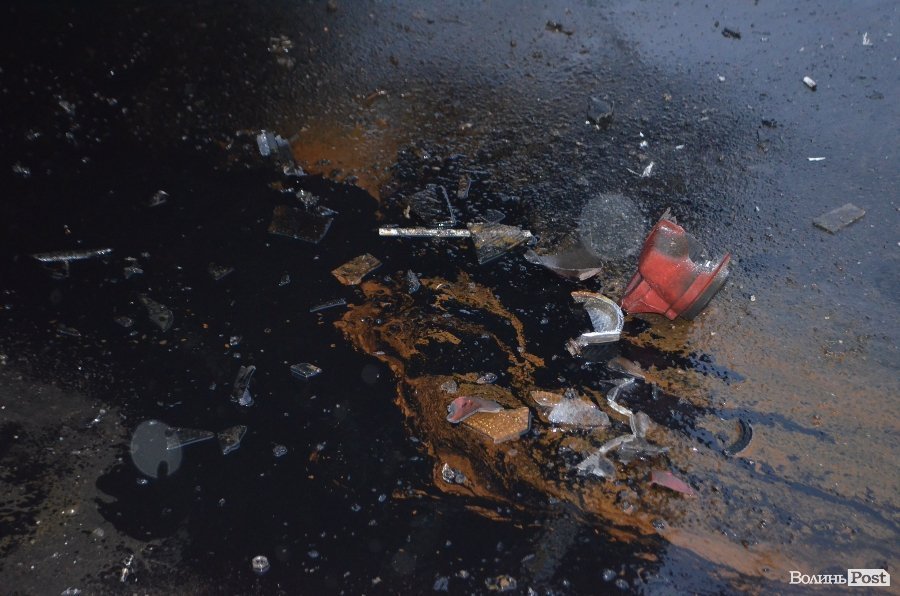 Найбільше постраждала передня частина машини з правої сторони від водія. Пошкоджено: лобове скло, фари, двигун, дверцята.