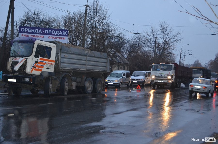 Аварія в Луцьку: не розминулися вантажівки. ФОТО