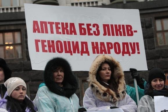Під Кабінетом Міністрів фармацевти пікетують проти аптечної мафії.