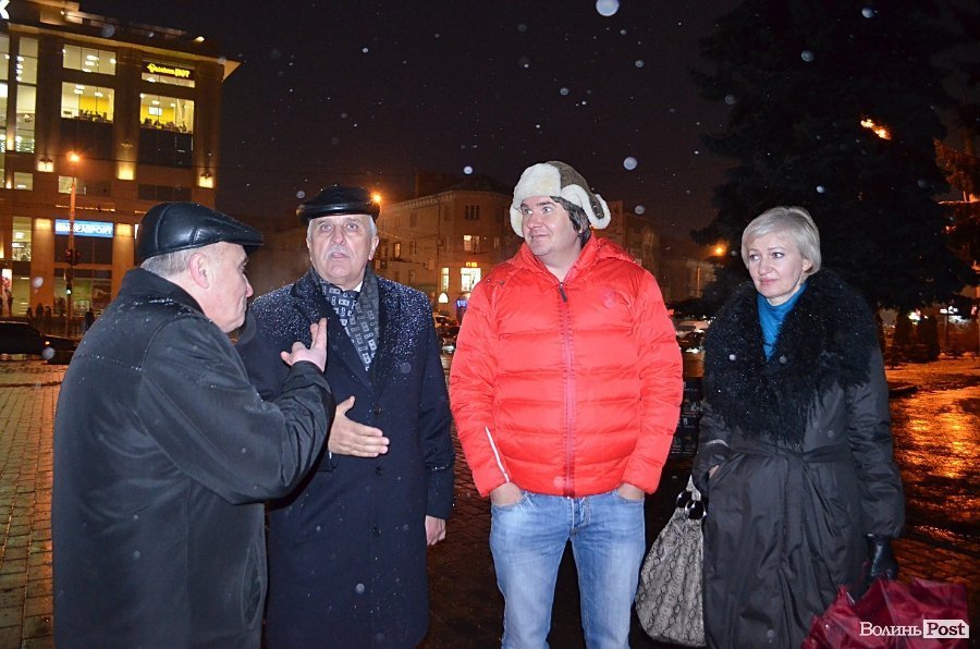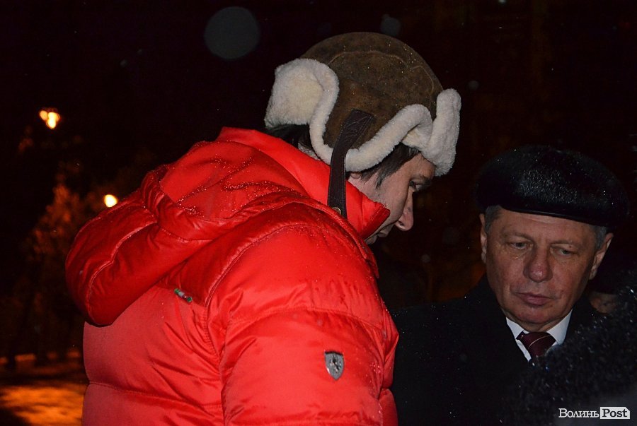 Міський голова Луцька Микола Романюк, який прийшов на відкриття дошки, подякував ідейникам розміщення фотостенду героям Майдану Ігорю Алєксєєву та його дружині, луцькому фотографу Ірині Мельник.