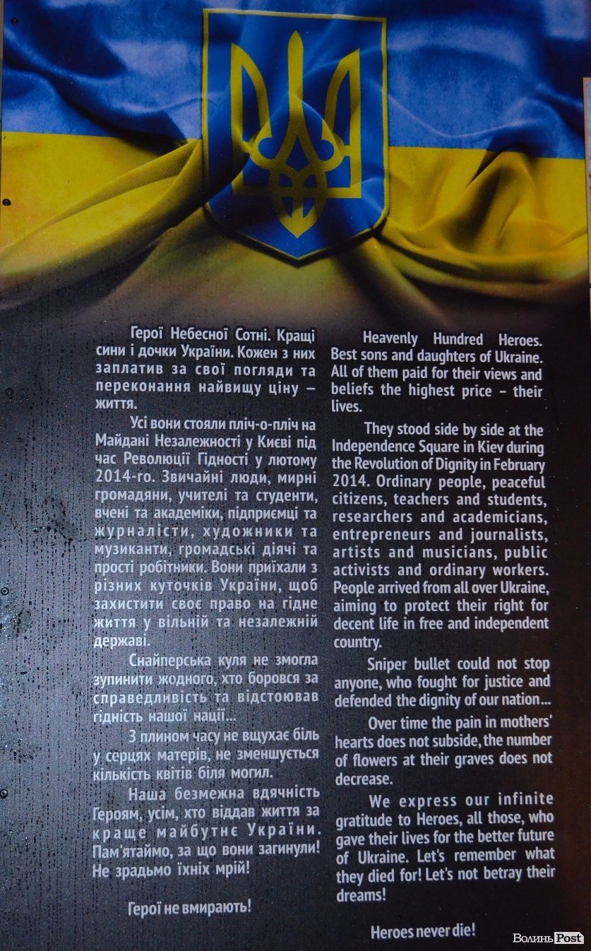 Пам’ятну дошку героям Небесної Сотні відкрили на Театральному майдані Луцька 20 листопада.