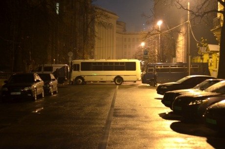 Пізно ввечері Адміністрація Президента, куди прямували активісти, була перекрита автобусами з силовиками.