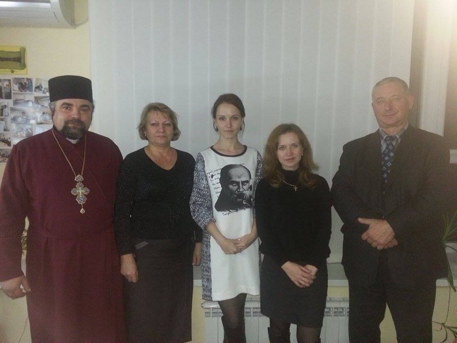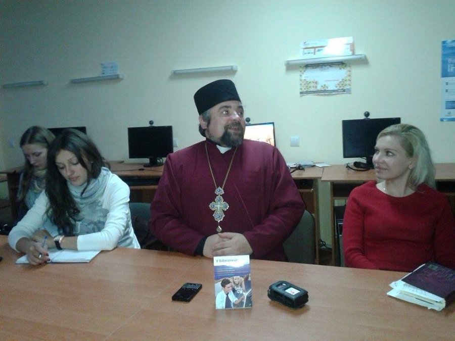 Учасникам дискусії було запропоновано переглянути уривок з фільму Мустафи Наєма «Контакт». Далі слово взяв настоятель Свято-Покровського храму у селах Маяки та Сирники отець Михайло. Зазначимо, що отець Михайло свого часу був на Майдані, а зараз постійно відвідує та допомагає бійцям в зоні АТО. За його словами, Україна починається з кожного з нас, але, на жаль, зараз вона починає загнивати.