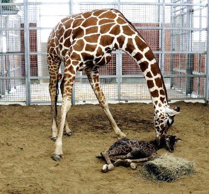 16. Новонароджений жираф у зоопарку в Далласі. У висоту малюк всього 1 м 80 см і важить 54 кг. Скоро він стане найвищою наземною твариною планети, якою й є дорослий жираф. (Фото Dallas Zoo):