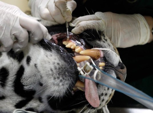 17. Прийом у стоматолога. Спеціаліст лікує під наркозом зуби у ягуара, який проходить повне медичне обстеження в зоопарку Буенос-Айреса. (Фото Enrique Marcarian):