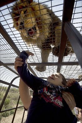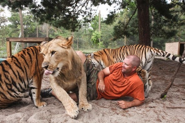 13. Любитель кішок. Карл Бовард з Флориди грає зі своїми тиграми й левами, яких у нього в саду цілих вісім. (Фото Laurentiu Garofeanu):