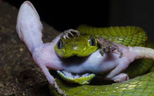 7. Котяча змія зловила гекона. В довжину вона може досягати 2.8 м. Ну не забуваємо, що всі змії, отруйні чи ні - хижаки. (Фото Avrajjal Ghosh):