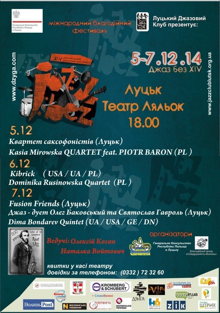 5-7 грудня у Луцьку пройде 14-й Міжнародний благодійний джазовий фестиваль «JAZZ BEZ 2014», - повідомляють на сайті «Відпочинок у Луцьку».