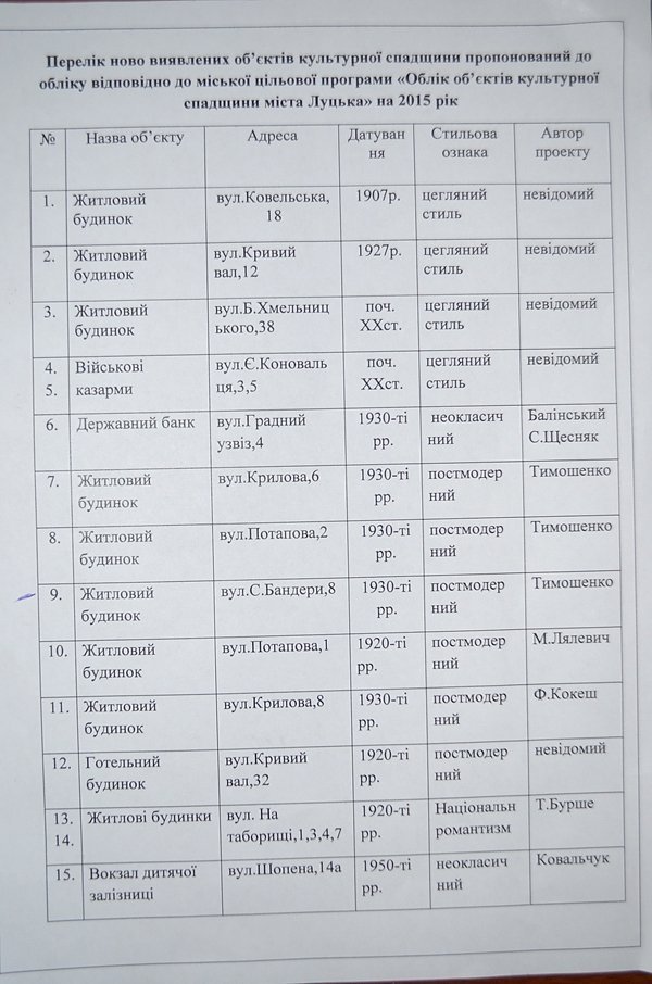 Відділ охорони культурної спадщини управління культури Луцької міської ради склав перелік нововиявлених об’єктів культурної спадщини.