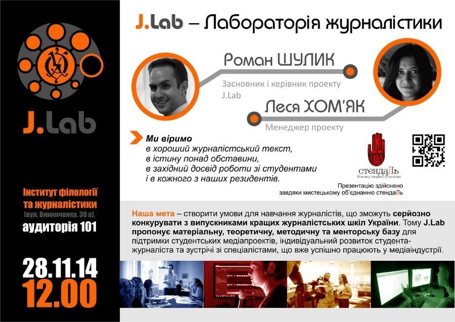 Лабораторія журналістики J.Lab – це проект, засновником якого є старший викладач кафедри журналістики Національного університету "Острозької Академії", а також СНУ імені Лесі Українки Роман Шулик.