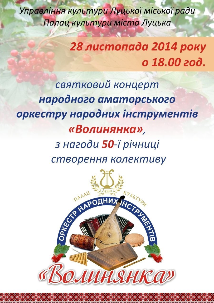 У Луцьку відзначатимуть 50-у річницю заснування народного аматорського оркестру «Волинянка».