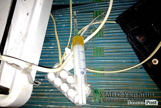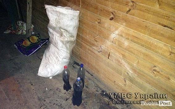 Волинські правоохоронці вилучили у 22-річного жителя Камінь-Каширського району дві пластикові пляшки ємкістю 1,5 літра та одну пляшку ємкістю 2 літра наповнені на речовиною бурого кольору з різким запахом ацетону. Окрім того, виявили шприц із такою ж рідиною та мішок із маковою соломкою, вага якого становить близько трьох кілограм.