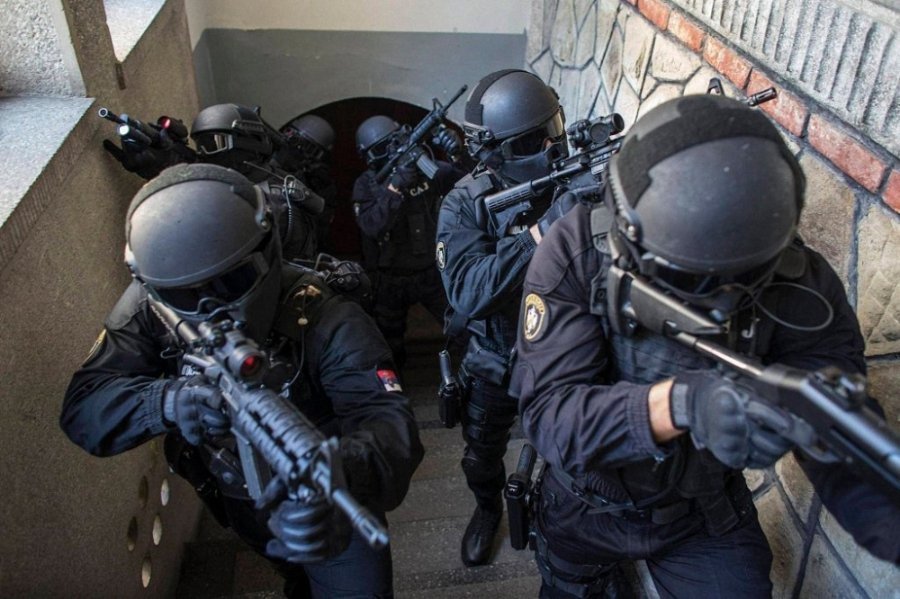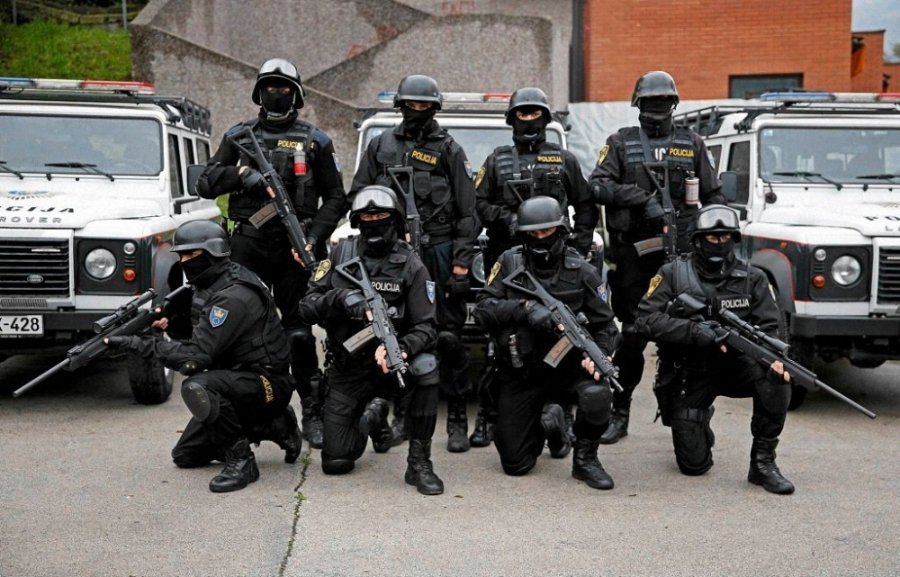 Поліція в Сербії. У Сербії поліцейські можуть використовувати різні силові методи - від кийків до спеціальних транспортних засобів, водних гармат і сльозогінного газу - для придушення заворушень під час нелегальних зібрань. Проте вогнепальна зброя може бути використана тільки тоді, коли людське життя перебуває під загрозою.