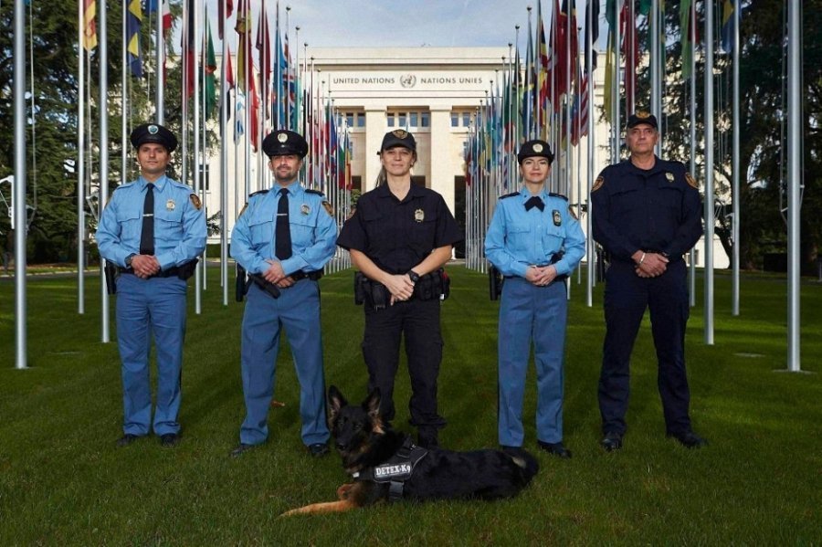 Сили безпеки ООН. Співробітники ООН повинні дотримуватися правил, що передбачені для поліцейських у швейцарських кантонах. З їх формулювання випливає, що «застосування зброї пропорційно обставинам допускається в крайньому випадку». Співробітники поліції повинні, однак, «в міру можливості не завдавати серйозних ран», а «застосування вогнепальної зброї має передувати попереджувальний постріл, якщо дозволять обставини». Штаб-квартира Організації Об'єднаних Націй в Женеві є екстериторіальної і не підпадає під швейцарську юрисдикцію.